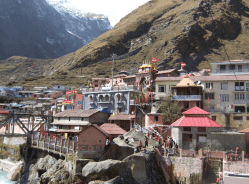 Shri Badrinath Dham: is considered the holiest of the four important shrines. The town is at an altitude of 3,133 m. above sea level, situated on the left bank of river Alaknanda and exactly between the two mountains Nara and Narayan and the shadow of Nilkantha peak. The shrine is dedicated to Vishnu the preserver and protector of the Hindu Divine Trinity.